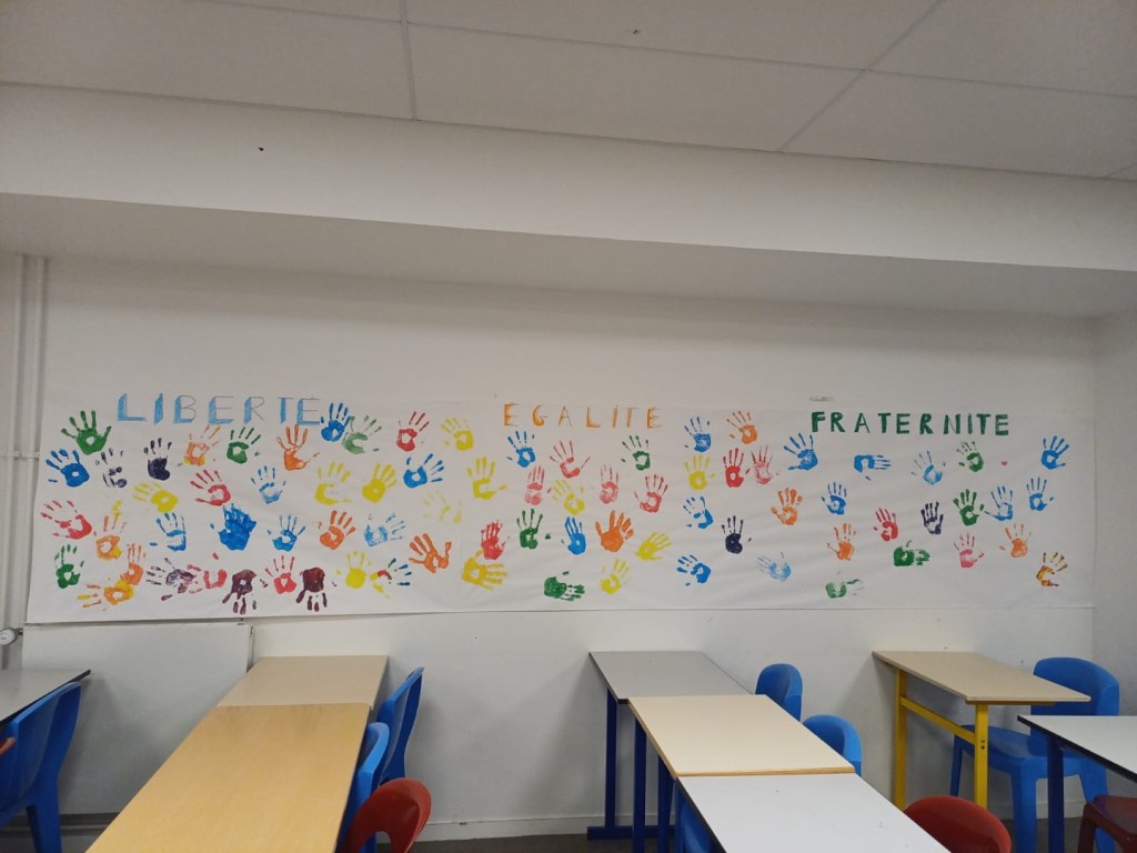 À l’occasion de la Semaine de la Laïcité, les élèves du collège ont réalisé une fresque à l’initiative des membres du CVC sous la supervision de Carole , Assistante d’Éducation, et Mme Duchêne, CPE. Cette action a pour objectif de sensibiliser les élèves aux valeurs de la République et de renforcer le principe de laïcité au sein de l’école publique, garantissant à chacun un espace de neutralité, de respect et de vivre-ensemble.